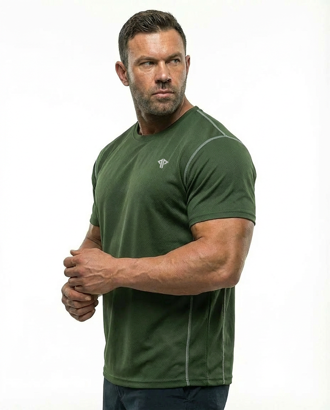 Crafted from a highly breathable AirFlex fabric, this tee allows continuous airflow to help you stay cool during intense workouts. The lightweight material feels super smooth and soft on the skin, making it comfortable to wear for extended training sessions. A slight stretch in the fabric enhances mobility without losing structure, supporting natural movement during lifts and exercises.